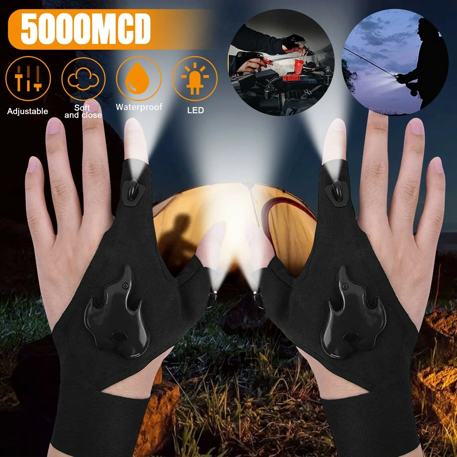 Waterproof LED Light Work Gloves
