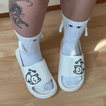 these magnetic attraction cartoon eye socks are fantastic. the design is playful and cute, and the magnetic feature adds an extra layer of fun. the socks are very soft and comfortable, perfect for wearing all day. the quality is top-notch, with excellent stitching and bright, long-lasting colors. i love matching socks with my partner, and these make it even more enjoyable. they are also very practical, keeping our feet warm and cozy. we’ve received so many compliments on these socks, and they always make us smile. i highly recommend these to any couple looking to add a bit of fun and connection to their daily routine.