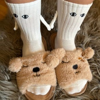 Made of super soft and comfortable material, these socks are undeniably adorable. The quality is top-notch, and the hand-holding feature adds an extra level of charm. I highly recommend them!