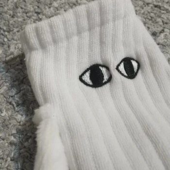 I can’t get enough of these cartoon eye couple socks. the magnetic attraction feature is such a creative and fun idea. the socks are incredibly soft and comfortable, making them perfect for all-day wear. the quality is outstanding, with durable stitching and vibrant colors that don’t fade after washing. the cartoon eye design is adorable and always brings a smile to my face. i love wearing these socks with my partner; it adds a playful touch to our outfits and makes us feel more connected. these socks have quickly become my favorite, and i highly recommend them to any couple looking for a unique and fun way to express their bond.